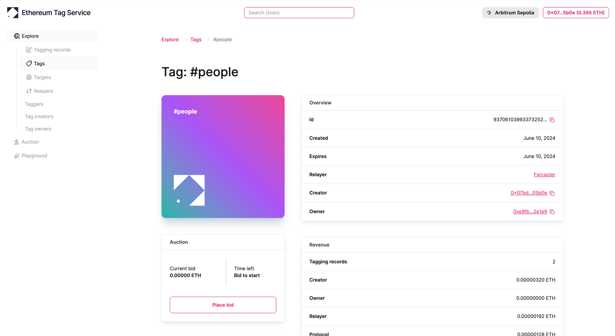 We're aiming for the end of August for our public testnet launch. This launch will reveal much more about the core functionality of ETS and include a developer SDK, documentation, a playground, and a mock tag auction. We're excited to share these features with you and look forward to your feedback.
